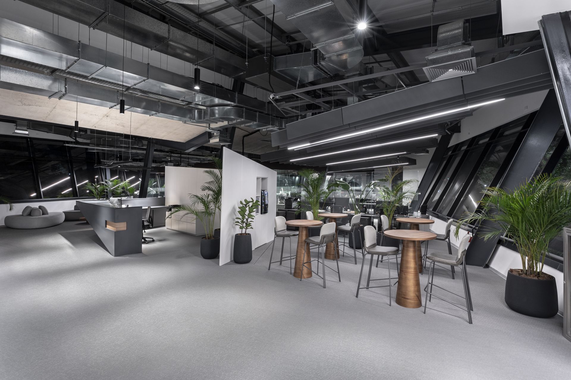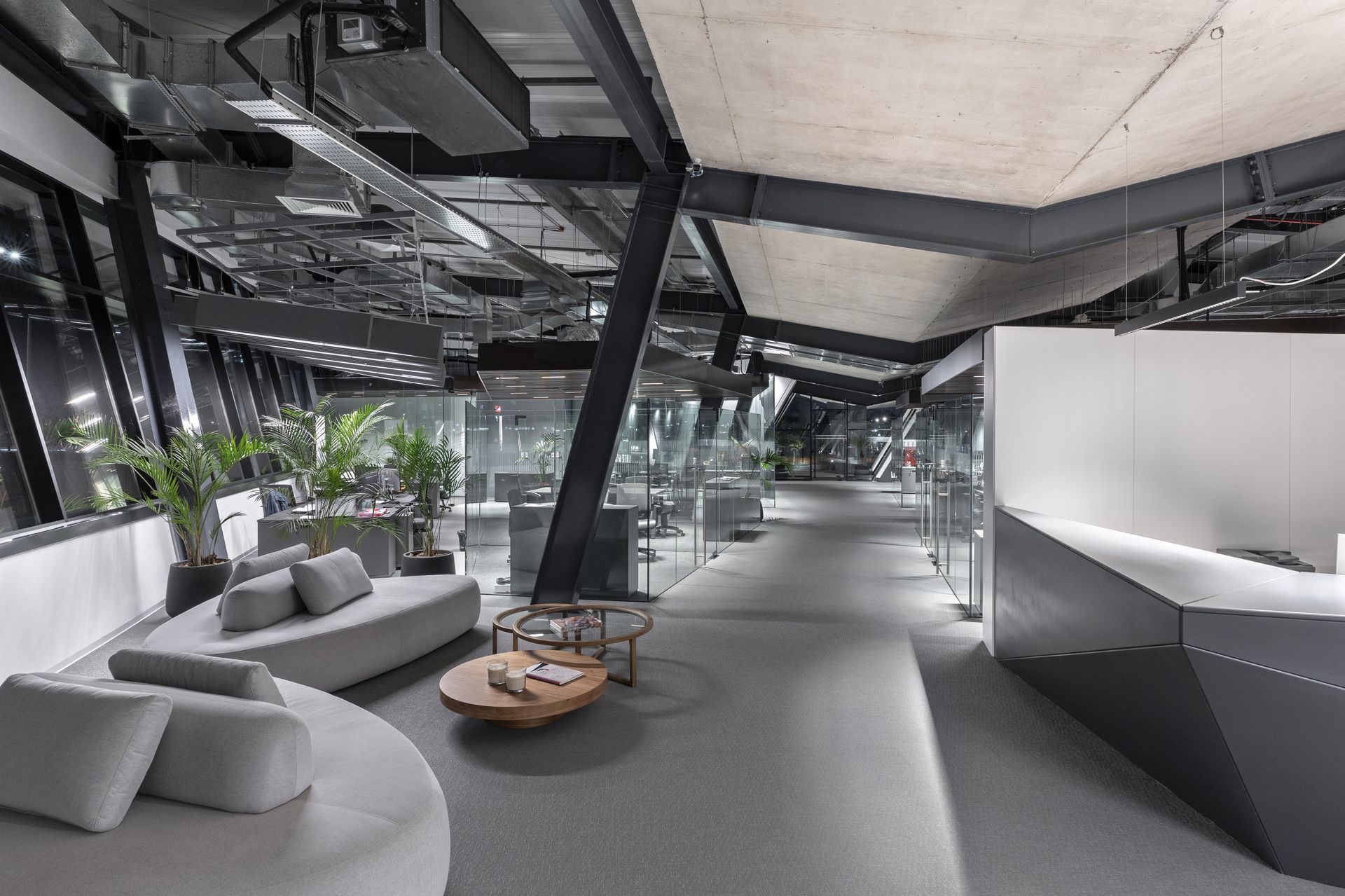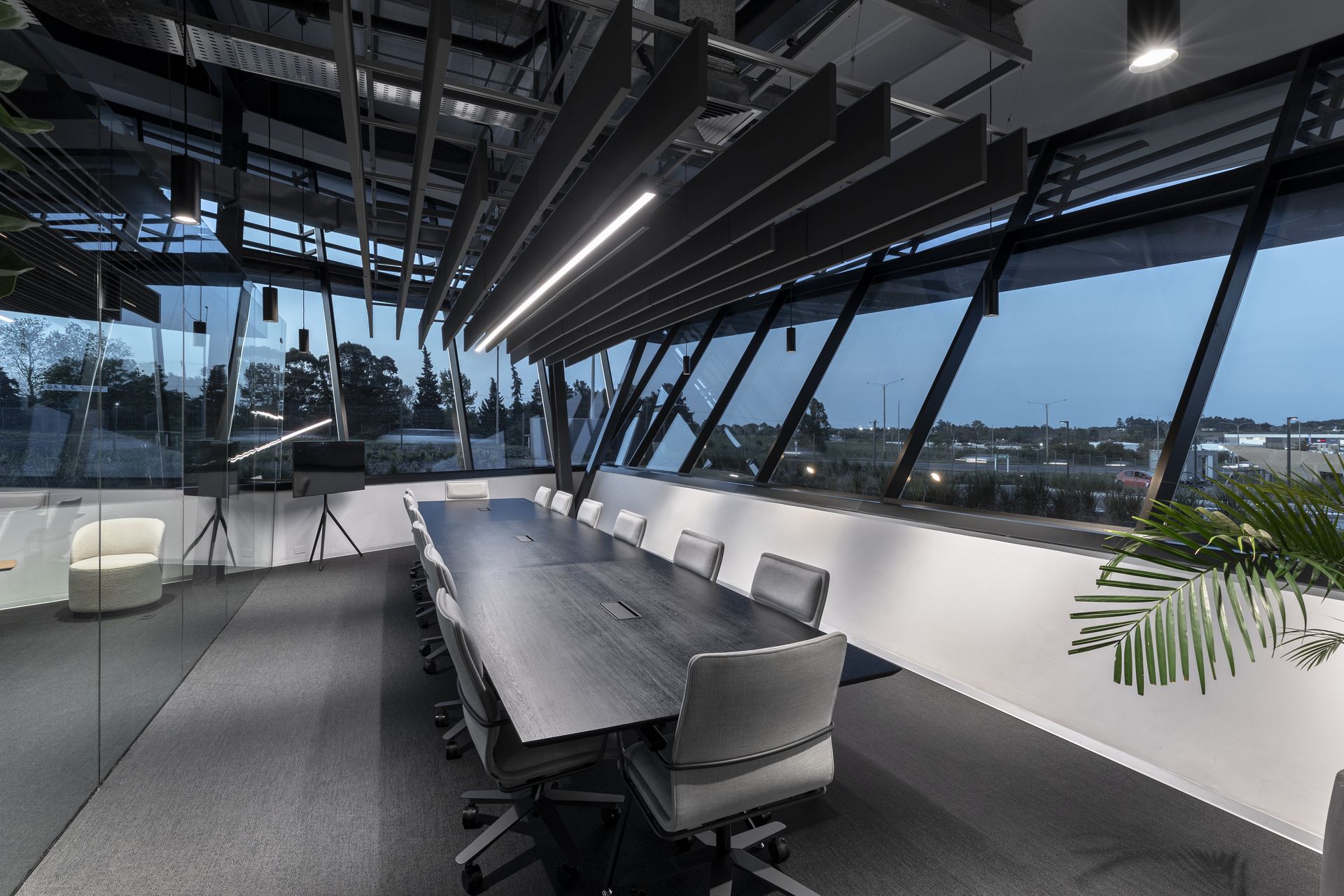 Cada luminaria fue seleccionada para cumplir con estándares de eficiencia, confort visual y durabilidad, garantizando un consumo optimizado y una estética coherente con el diseño. La iluminación no solo refuerza la identidad moderna del edificio, sino que también asegura una experiencia única para quienes trabajan y visitan el lugar.