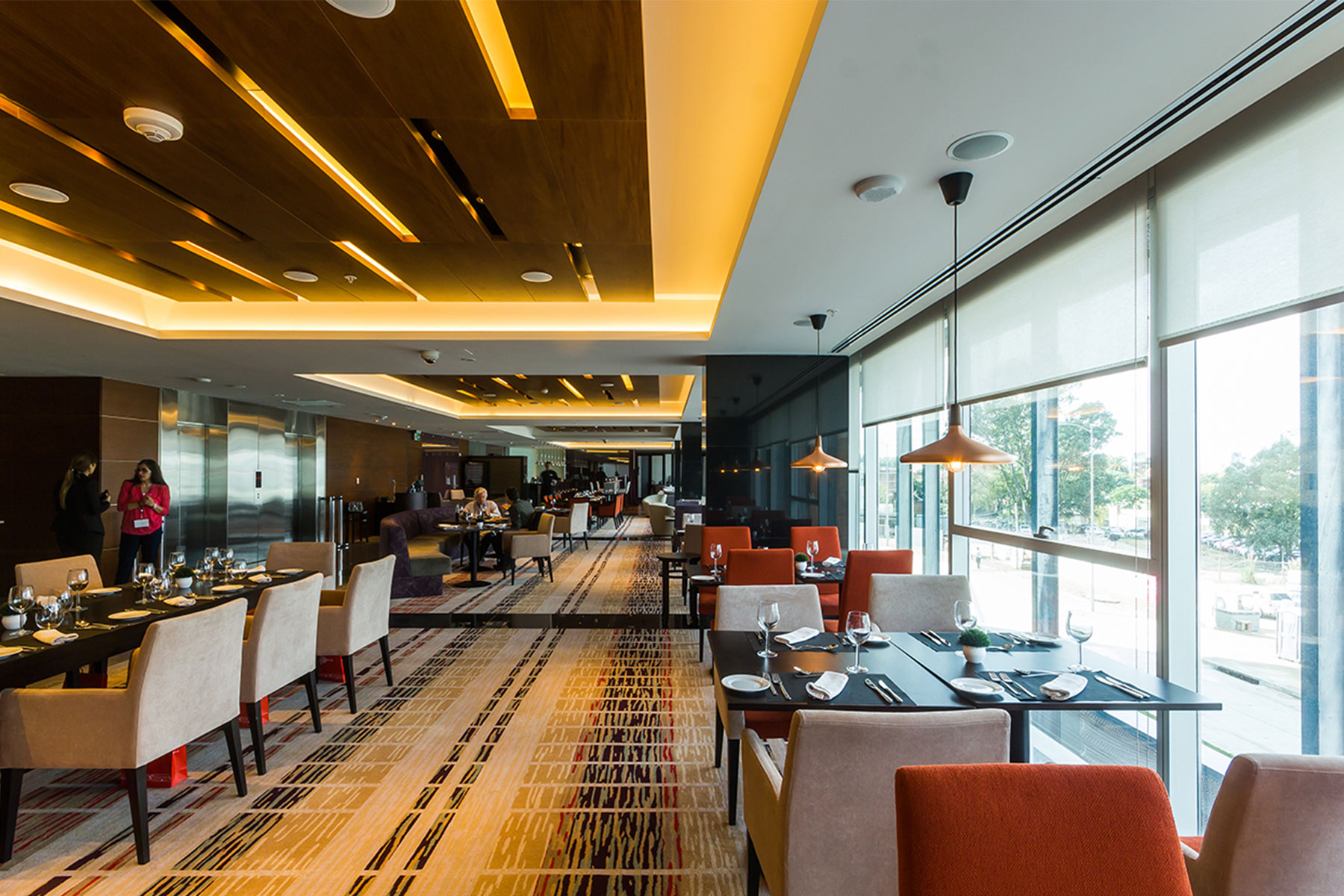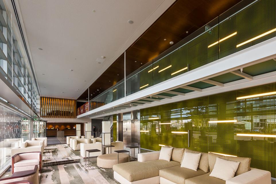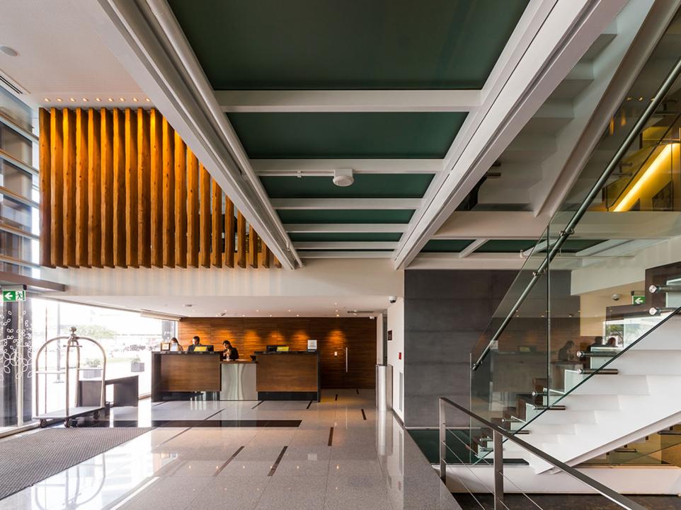 Como parte de su diseño integral, el proyecto incorpora un sistema de iluminación de última generación que abarca todos los espacios del hotel: fachada, áreas de servicio y lobby. Este suministro se complementa con un sistema de control inteligente Lutron, que permite la gestión centralizada de la iluminación, programación horaria y la integración de sensores para optimizar el consumo energético. Gracias a esta tecnología, se logra un uso eficiente de la energía con ahorros superiores al 45% en iluminación, reforzando el compromiso del proyecto con la sostenibilidad y la innovación.